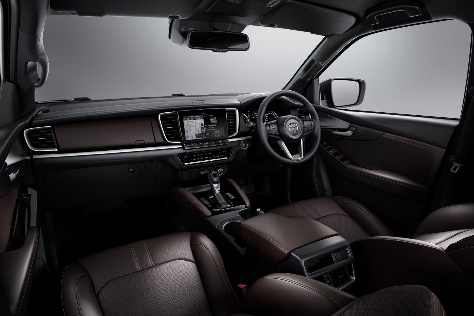 Mazda BT-50 đời mới sở hữu không gian nội thất quen thuộc và lịch sự với ghế và vô lăng bọc da cũng như ghế lái điều khiển điện. Bên cạnh đó, xe được bổ sung thêm một màn hình cảm ứng ở vị trí trung tâm kích thước 7 inch, cho phép điều khiển nhiều tác vụ. Điều này khiến cho bệ điều khiển trung tâm trở nên gọn gàng hơn rất nhiều.