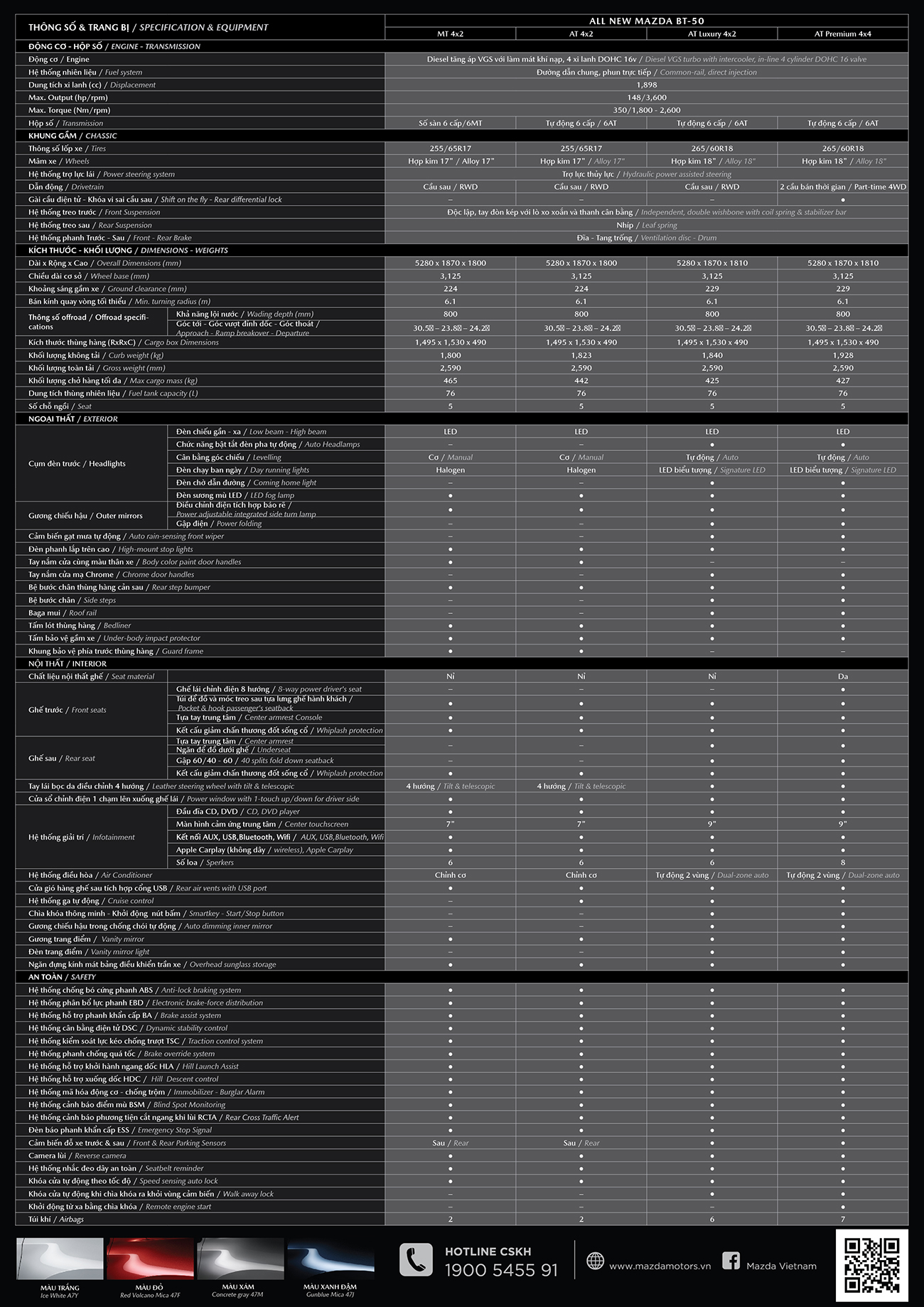 MAZDA BT-50 1.9L AT 4X2: | 614 triệu đ |