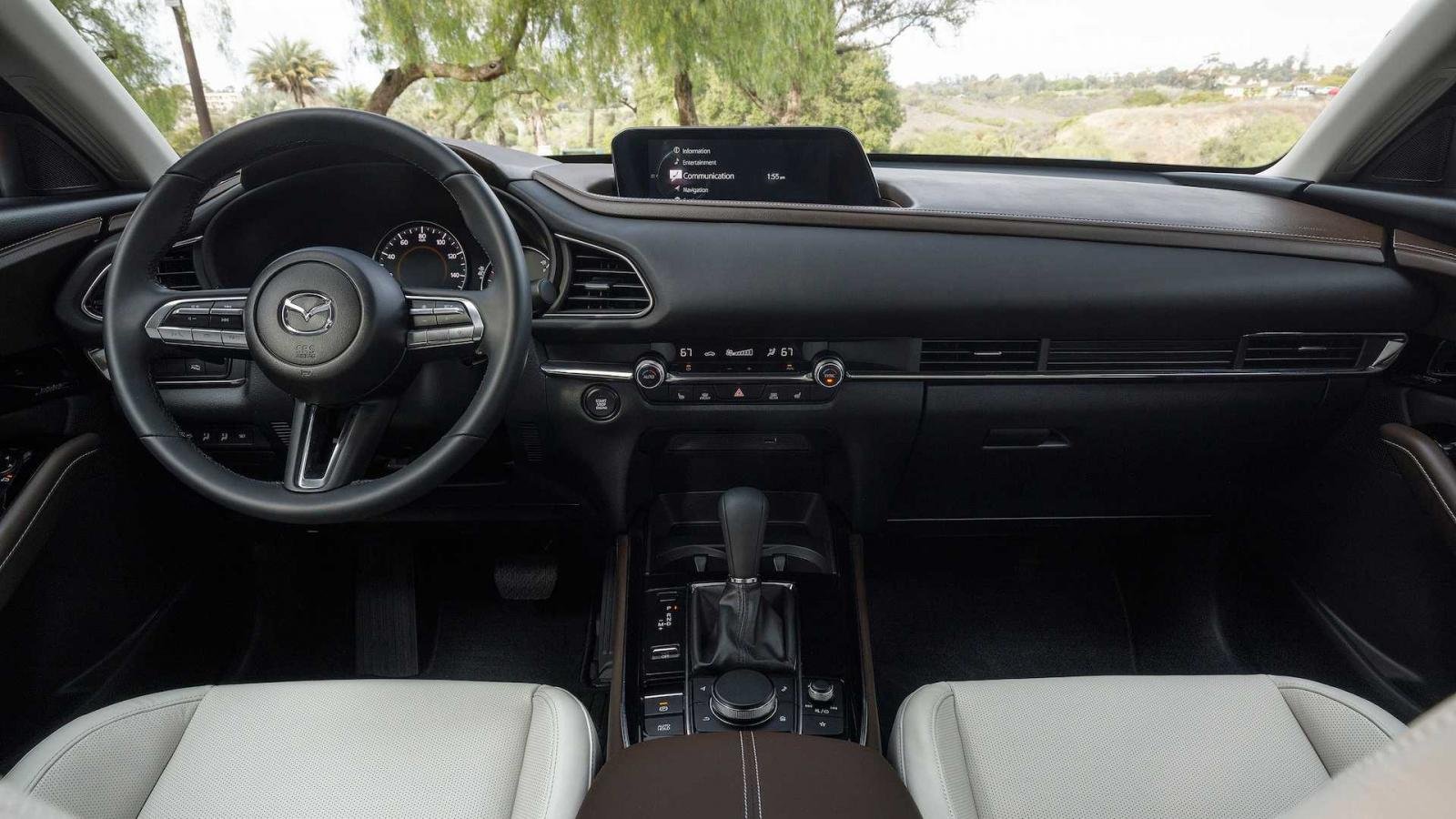 Khoang nội thất của mẫu xe ô tô 5 chỗ gầm cao Mazda CX-30 2021 gần như được giữ nguyên từ mẫu xe 5 chỗ All-New Mazda3 sang. Nội thất xe tiếp tục ứng dụng hiệu quả triết lý Human Centric – lấy con người làm trung tâm, nhờ đó tổng quan nội thất tuy tinh gọn nhưng dễ thao tác. Đồng thời, cách thức phản hồi của các chức năng cũng được chú trọng nhằm mang đến cảm xúc cho người dùng.