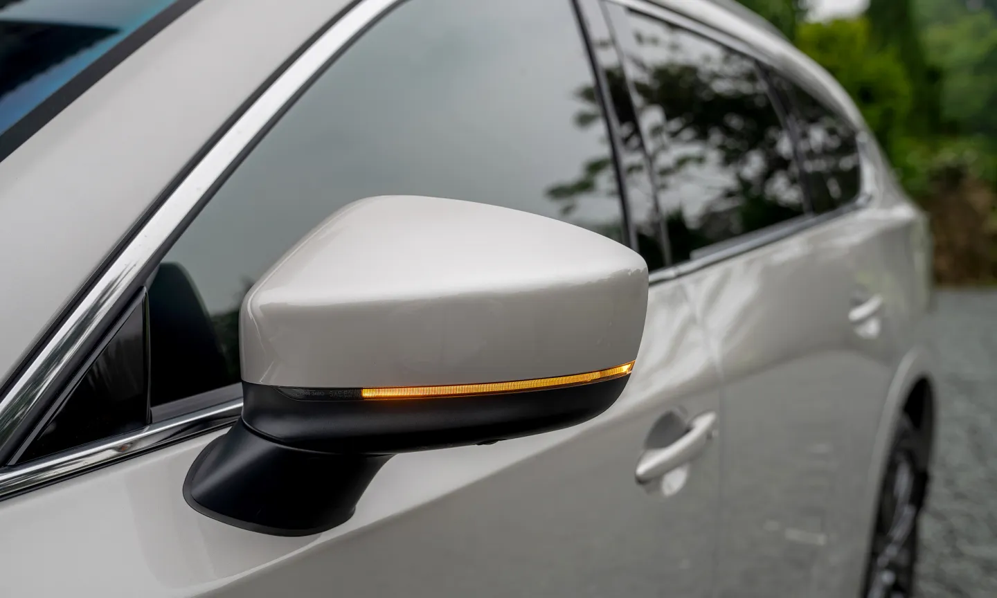 Gương chiếu hậu, tay nắm cửa đồng màu thân xe, mang đến cái nhìn liền mạch cho tổng thể New Mazda CX-8. Trong đó, gương chiếu hậu có tính năng chỉnh gập điện tự động, tích hợp đèn báo rẽ. Viền cửa sổ mạ crom sáng bóng cũng phần nào gia tăng vẻ sang trọng cho xe khi nhìn ngang.