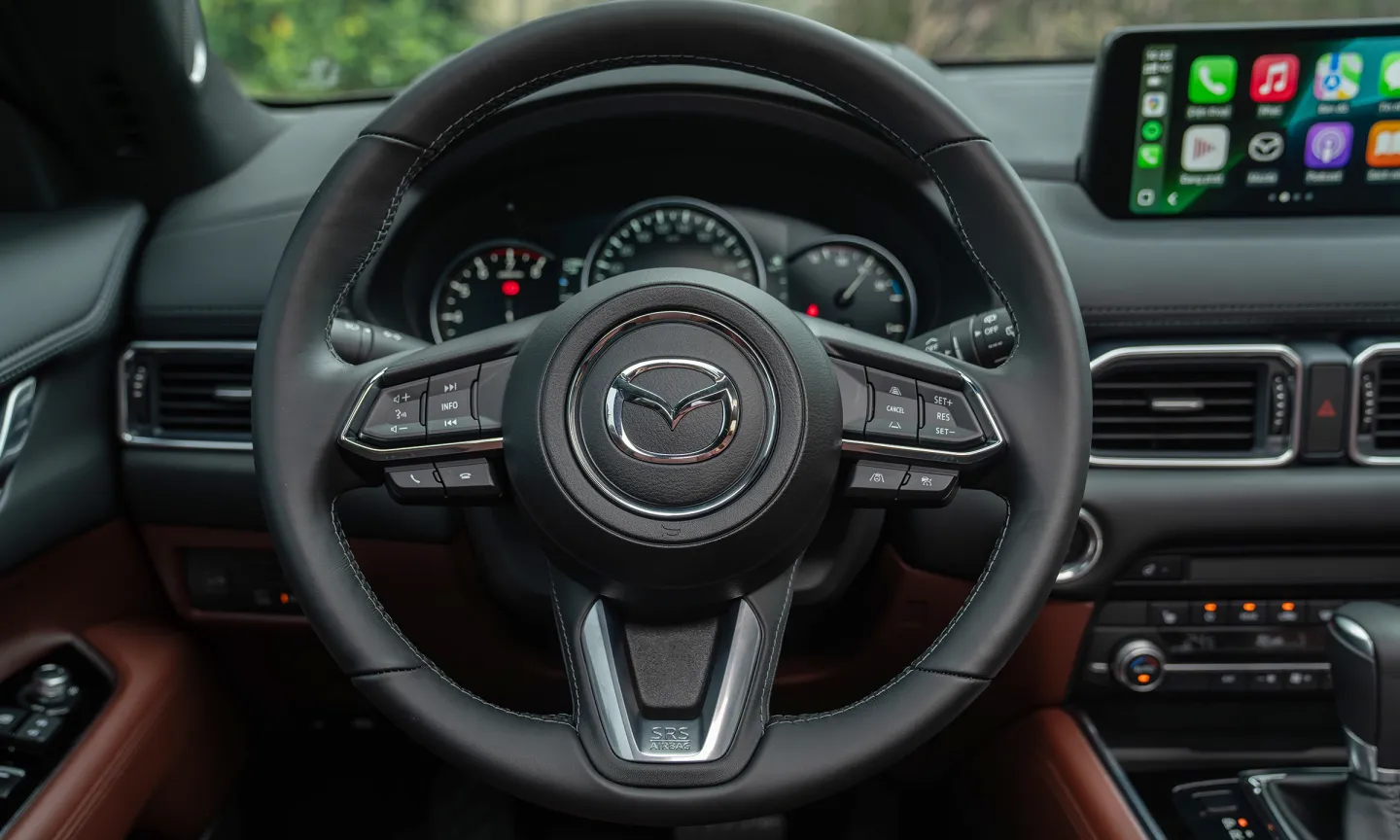 Trở lại khoang lái, Mazda CX-8 2025 vẫn được phát triển theo triết lý “Ít mà nhiều - Less is more” đặc trưng của người Nhật với điểm nhấn là màn hình trung tâm 8 inch kết nối Apple Carplay không dây và Android Auto; hệ thống âm thanh vòm 10 loa Bose cao cấp.