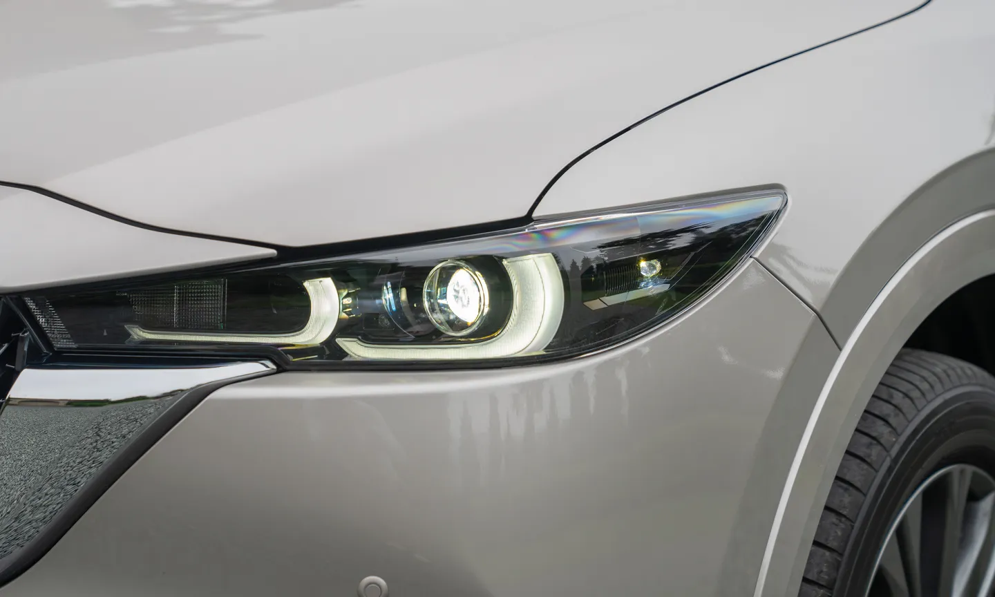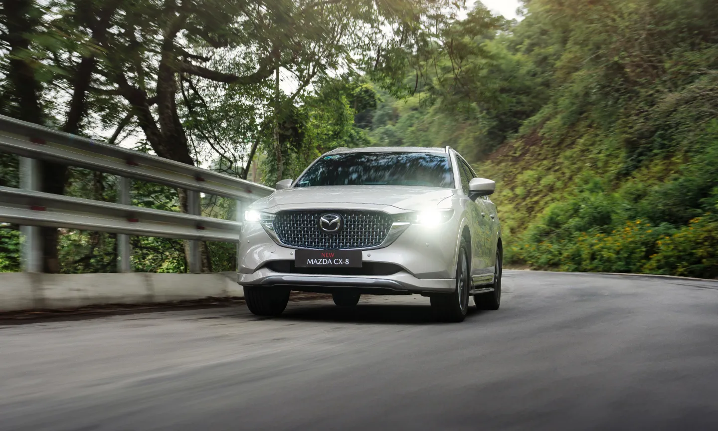 Hai bên đầu xe bố trí cụm đèn chiếu sáng mới với dải LED kép, tạo cảm giác trẻ trung, hiện đại hơn. Với sự hợp thành từ 24 bóng LED bật/tắt độc lập theo vùng, cụm đèn trước của CX-8 không chỉ cho khả năng chiếu sáng vượt trội mà còn tránh gây ảnh hưởng tới các phương tiện lưu thông ngược chiều.