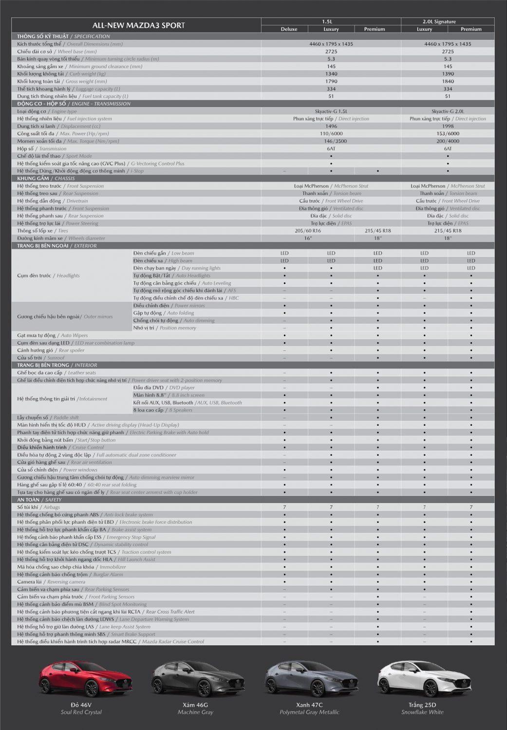 Mazda3 Sport 1.5L Luxury: | 645 triệu đ |