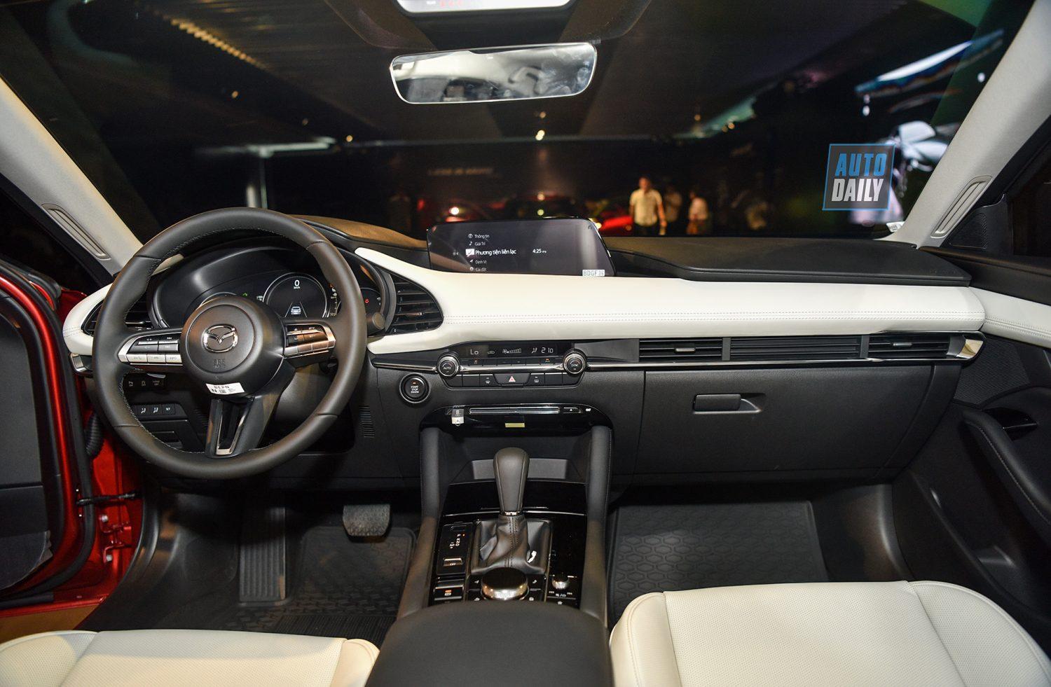Bên cạnh ngoại thất đẹp mắt, nội thất của mẫu xe gây ấn tượng với thiết kế tối giản để tạo không gian thoáng đãng quanh vị trí lái. Bảng táp-lô được thiết kế hướng về người lái và sở hữu nhiều trang bị hiện đại với vô-lăng bọc da tích hợp lẫy chuyển số, màn hình hiển thị 8,8 inch, hệ thống Mazda Connect hỗ trợ kết nối Android Auto và Apple CarPlay. Danh sách tiện nghi còn được nối dài bởi ghế lái chỉnh điện, điều hòa tự động 2 vùng, cửa sổ trời, chìa khóa thông minh, nút bấm khởi động, gương chống chói tự động. Đặc biệt, với việc tăng chiều dài cơ sở tăng thêm 25mm so với thế hệ cũ, không gian bên trong xe đã trở nên rộng rãi hơn. Hệ thống ghế ngồi được thiết kế thoải mái và mang lại cảm giác cao cấp với chất liệu da.